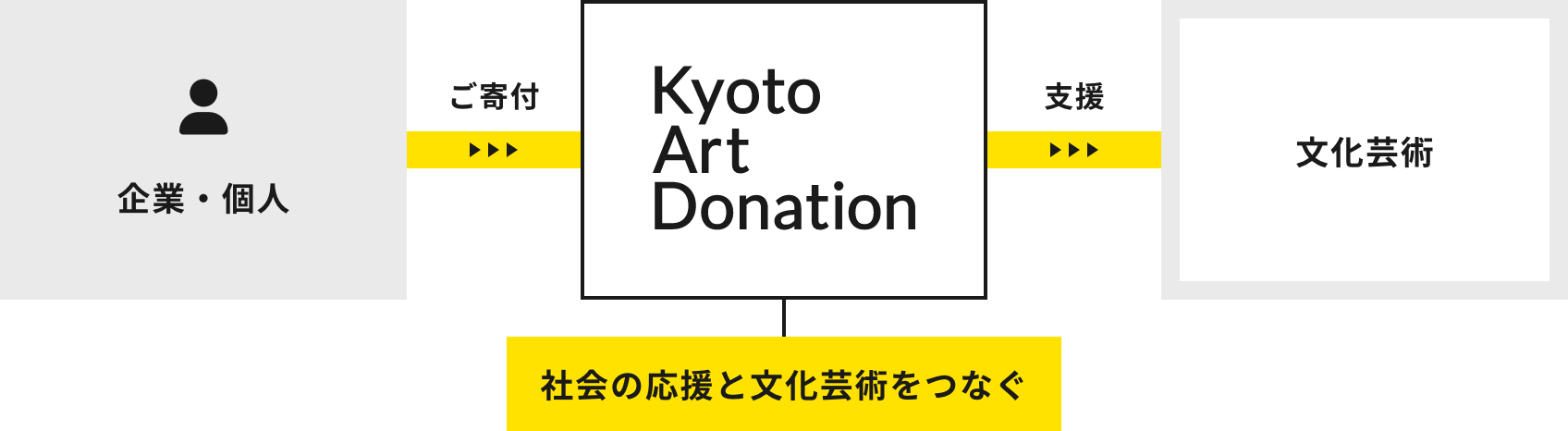 文化芸術がこれから先も育まれていくために、いま私達が大切にすべきは、どのような危機にあっても持続可能な形で文化芸術を発展させる、その「新しい形」を見出すことではないか。そんな想いのもと立ち上がったのがKyoto Art Donationです。